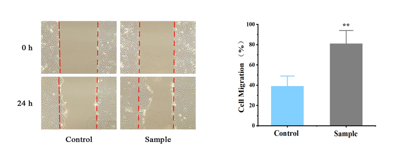 與空白對(duì)照相比,樣品作用后細(xì)胞遷移能力增強(qiáng),說明樣品具有良好的修護(hù)功效。