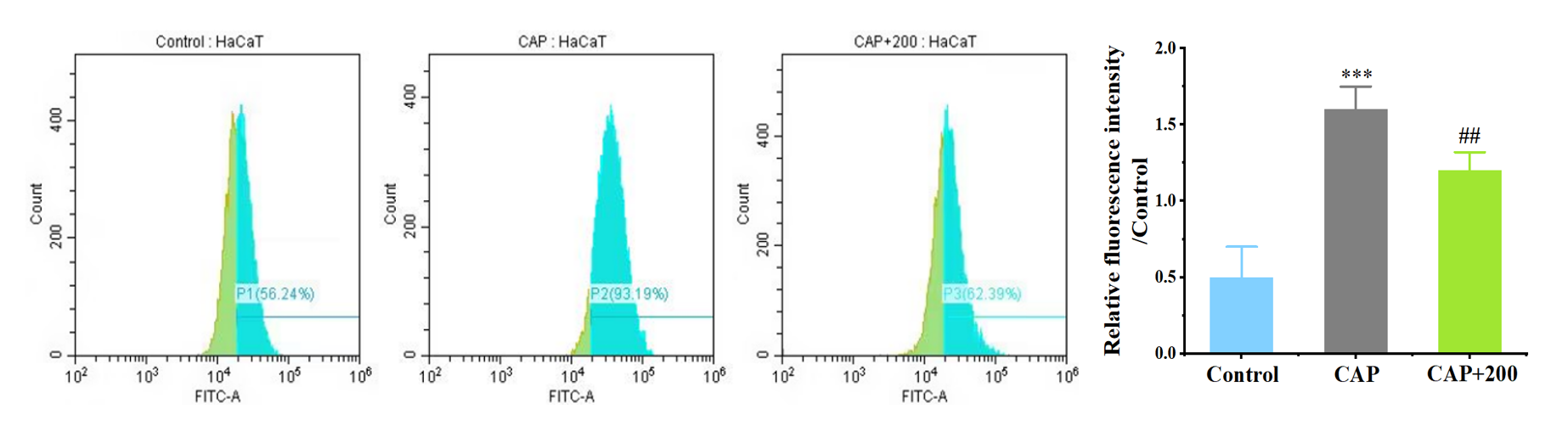 辣椒素(CAP)激活TRPV1通路導(dǎo)致Ca2+內(nèi)流增加,即細(xì)胞內(nèi)Ca2+含量增加;樣品減緩了細(xì)胞Ca2+內(nèi)流,具有一定的舒緩功效。