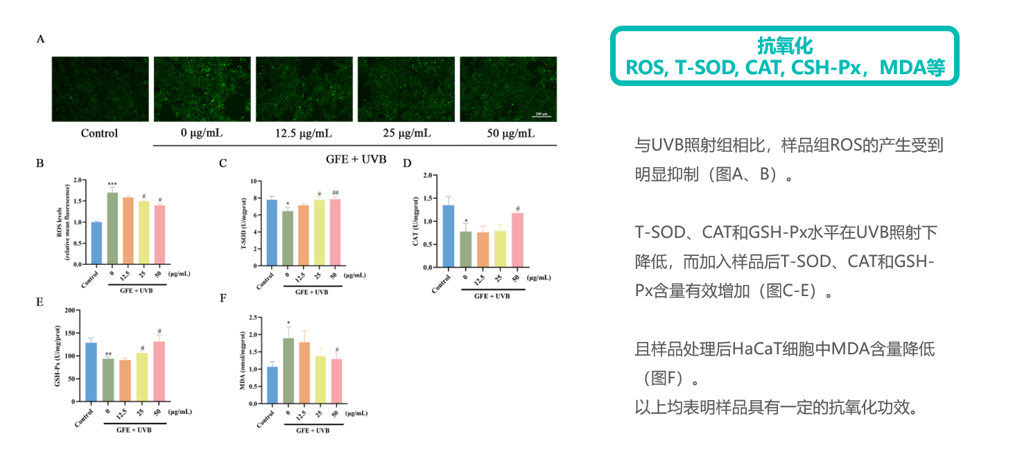 UVB刺激人角質(zhì)形成細(xì)胞 | 抗氧化(模擬UVB損傷) | ROS | 熒光染色 | |